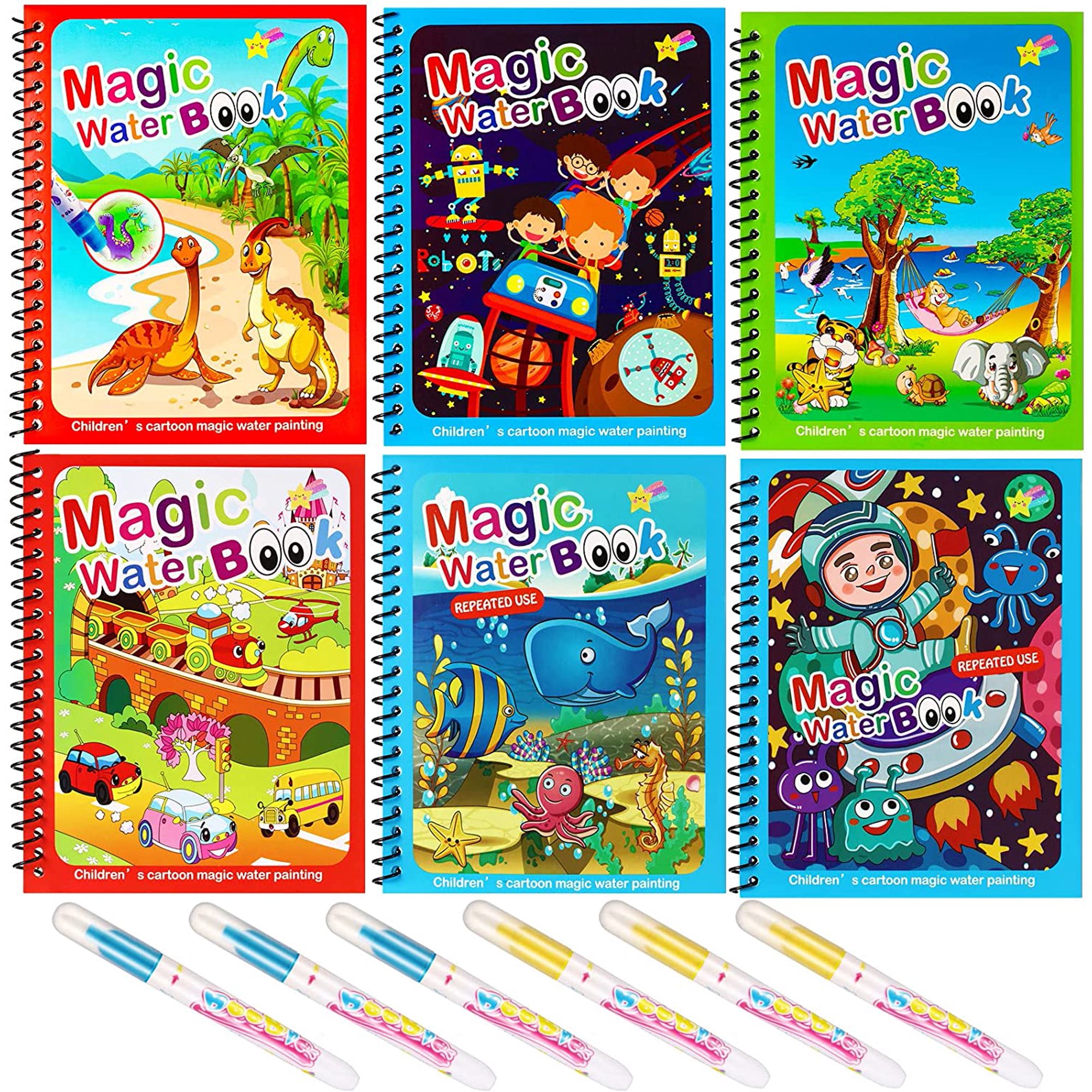 6 Pack Water Coloring Book Water Pen Coloring Book Animal Underwater Cosmic Vehicle Robot Water Paint Book Reusable Book And Pen Water Reveal Books Water Reveal Activity Pad Toy For Travel Game